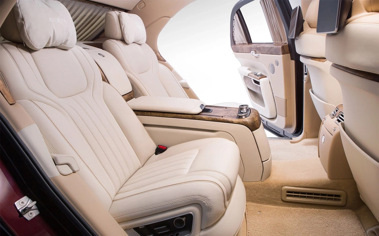 Фото Aurus Главный инженер Дмитрий Шалаев и руководитель направления по маркетингу Жанна Воробьева сообщили, что в текущей конфигурации специалисты АвтоВАЗа смогли «выжать максимум» и попытались обеспечить комфортную посадку пассажиров второго ряда за счет изменения набивки кресла и уменьшения толщины потолка, однако, когда речь заходит о модели бизнес-класса, в машину просятся полноценные капитанские кресла.